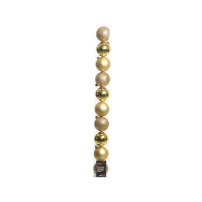 Gold baubles in 3 different finishes. glitter, matt and shiny Box of 10 6cm diameter Shatterproof