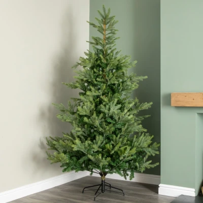 Bring the beauty of a natural Christmas tree into your home with the Everlands 7ft (210cm) Green Grandis Fir Real Look Christmas Tree. Designed to combine realism, quality and ease of use, this tree is an excellent centrepiece for festive decorating year after year.. At 7ft (210cm) tall, this tree is crafted with a thoughtful mix of PE and PVC branches, this tree delivers a lifelike look and texture, closely resembling the needles and structure of a real fir while maintaining the durability of an artificial tree. With an impressive 2,326 tips, the Grandis Fir offers a dense, high quality finish that provides plenty of coverage for lights, baubles and garlands.. The tree comes in three easy to handle sections, making set up quick and straightforward. The branches naturally fold down into place as each section is assembled, allowing you to shape and fluff the tree with minimal effort. Measuring 150cm wide at the base, the tree has a classic, well proportioned shape that suits a variety of room sizes without overwhelming the space. It is supported by a sturdy black metal foot stand, providing excellent stability throughout the festive season.. Please note; the branches will need to be rearranged / fluffed to achieve the appearance in our product images.. Suitable for indoor use only.. Product Specifications. Height: 7ft (210cm) Diameter: 150cm. Stand Diameter: 51cm. Tip Count: 2326