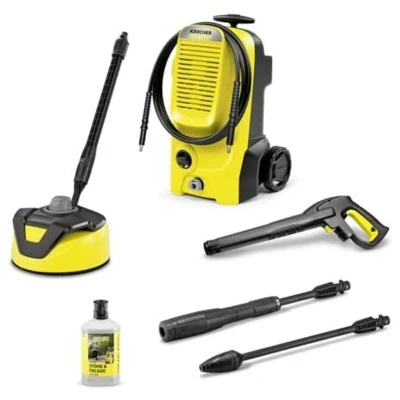 General description The K 5 Classic Home is ideal for occasional use and effectively removes moderate dirt around the home. It is suitable for cleaning bicycles, patios, and cars, delivering impressive results with its powerful universal motor. The included Home Kit features a 3-in-1 stone and façade cleaner (1 l) and a T5 surface cleaner, ensuring splash-free and efficient cleaning on smooth surfaces. Technical specifications Powerful universal motor 8 metre long high-pressure hose Includes 3-in-1 stone and façade cleaner (1 l) Includes T5 surface cleaner Other information Features a trigger gun with Quick Connect system VPS (Vario Power spray lance) for adjustable pressure Dirt blaster for stubborn dirt removal Water filter to protect the pump from small dirt particles 5 years guarantee (2 year guarantee with option to extend by registering within 28 days of purchase at karcher.com/register)