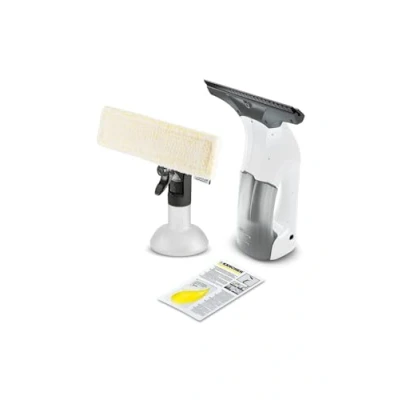 Streak-free clean: the Kärcher WV 1 window vacuum cleaner absorbs moisture from smooth surfaces such as windows, mirrors or tiles completely and leaves streak-free results Wireless Application The window vacuum cleaner has a built-in battery that allows a run time of up to 20 minutes. The LED indicator provides information about the charging status during use Handy design: the window vacuum cleaner is very light and handy with a weight of only 0.5 kg. The removable dirty water tank has a capacity of 100 ml Effective cleaning: With the spray bottle with microfibre cover, surfaces can be easily pre-cleaned. Then the cleaned surface can be vacuumed with the window vacuum cleaner Box contents: the set includes the Kärcher window vacuum cleaner WV 1, a charger, a spray bottle with microfibre cover and 20 ml window cleaner concentrate
