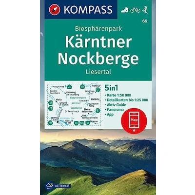 Kärnten Nockberge Biosphärenpark + Aktiv Guide (66): 5in1 Wanderkarte mit Panorama, und Detailkarten inklusive Karte zur offline Verwendung in der KOMPASS App. Fahrradfahren. Skitouren.