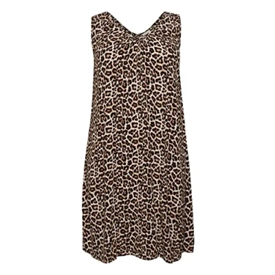 Kaffe Curve Women's Plus Size Shift Dress Knee Length Sleeveless V Neck, Feather Gray Leo Print, 18/Big