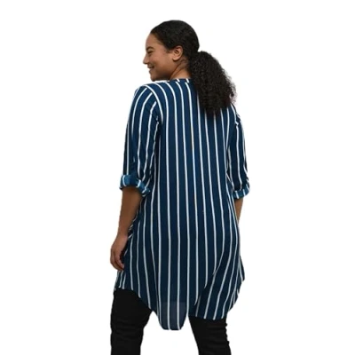 Kaffe Curve Women's Plus Size Shirt Dress Tunic Long Sleeves Knee Length, Legion Blue/Chalk Stripe, 16/Big