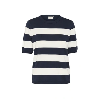 Kaffe Lizza Striped Print Tshirt, Women's, Size: Small, Midnight chalk wide stripe