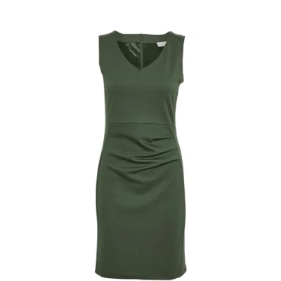 Sleeveless Dress with V-Neck A-Line dress for special occasions like parties, wedding, dating Figure hugging and slimming bodycon Slightly stretchy material Fitted design with side shirring and ruching