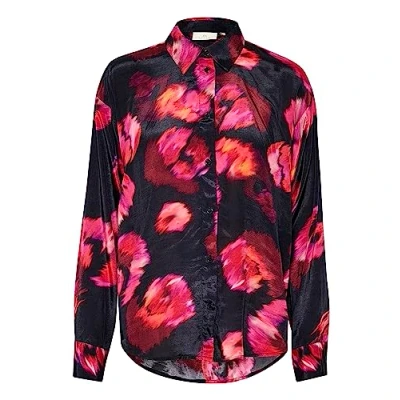 KAFFE Women's Button Up Shirt Relaxed Fit Long Sleeves Back Yoke, Sun Dried Flower Print, 18