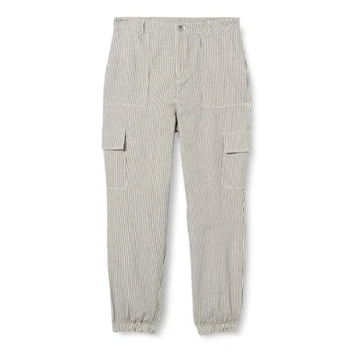 Kaffe Women's Women's Cargo Pants Striped Casual Fit Regular Waistband Elastic Cuffs Pants, Black/White Stripe,
