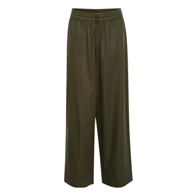 Kaffe Women's Casual Pants Elastic Waist Wide Legs Full Length Pockets Pants, Forest Night,