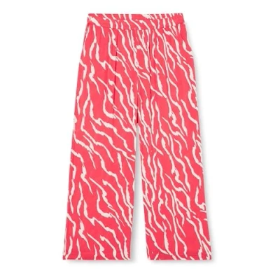Kaffe Women's Culotte Pants Printed Cropped Length Wide Legs Elastic Waist Pants, Cayenne/Ant. White Zebra Print,