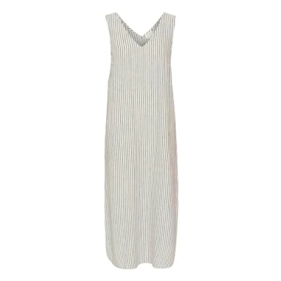 Kaffe Women's Dress V Neck Sleeveless Pockets Mid Calf Length Casual Fit, Chalk/Black Stripe, 12