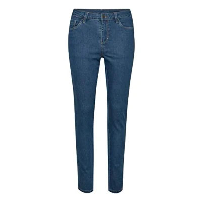 Kaffe Women's Jeans Slim Fit High Waisted Regular Waistband Full Length, Medium Blue Washed Denim, 18