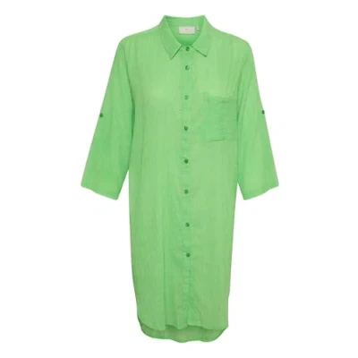KAFFE Women's Kavivian Shirt Dress 3/4 Blouse, Poison Green/Chalk Stripe, 10 (S)