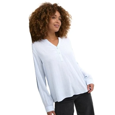 Kaffe Women's Long Sleeves V Notch Henley Neck Regular Fit Hip Length Blouse, Windsurfer/Chalk Stripe, 12 (M)