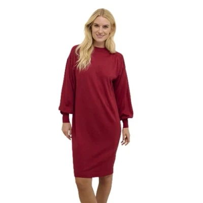 KAFFE Women's Midi Dress Knitted Long Sleeves Round Neck Tying Belt Knee...