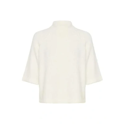 KAFFE Women's Pullover Half Sleeves High Neck Cropped Length Fuzzy Knit, Chalk, Medium