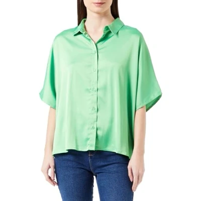 KAFFE Women's Shirt Button Up Relaxed Fit Sleeves Long Point Collar, Green/Yellow...