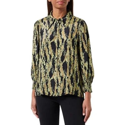 KAFFE Women's Shirt Button Up Relaxed Fit Sleeves Long Point Collar, Green/Yellow Snake Print, 8 (XS)