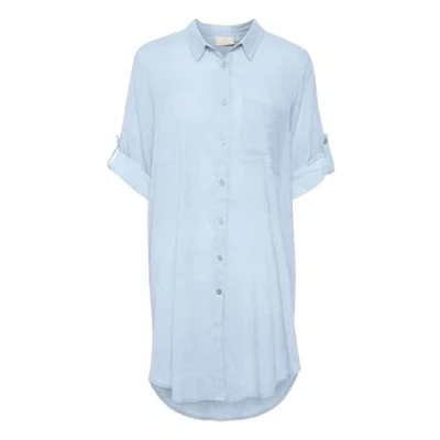 KAFFE Women's Shirt Dress 3/4 Sleeve Tunic Casual Long, Cashmere Blue/Chalk Stripe, 14 (L)