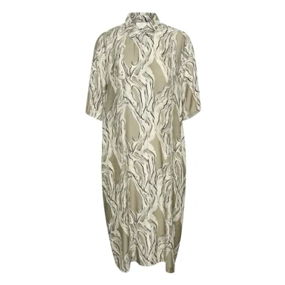 KAFFE Women's Shirt Dress Collared Buttons Half Sleeves Pockets Knee Length, Vetiver Marble Print, 14