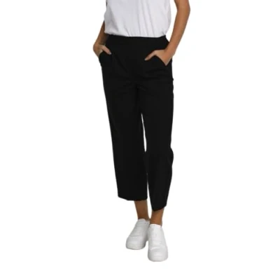 KAFFE Women's Trousers Cropped Length Elastic Waist Regular Fit Pockets Pants, Black Deep, 10