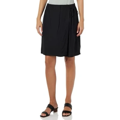 KAFFE Women's Wrap Skirt Above Knee Length Elastic Waist Straight Fit Pockets, Black Deep, 10