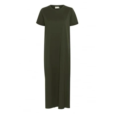 KAFFE Women's Maxi Short Sleeves Jersey Dress Crew Neck Relaxed Fit, Forest Night, S