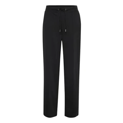 Kaffe Women's Pants Elastic Drawstring Waist Wide Legs Full Length Midrise Pants, Black Deep,