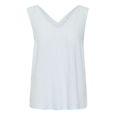 KAFFE Women's Tank Top V Neck Sleeveless Regular Fit Hip Length Wide Shoulders, Windsurfer/Chalk Stripe, 14