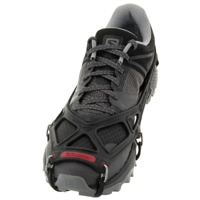 Kahtoola Exospikes are Robust and Versatile ice Spikes, Developed for Running, Walking, and Hiking on Winter Surfaces where grip and Stability are Crucial. They are Designed to Handle more Varied and Uneven Terrain than Kahtoola's Lighter Models and Provide Secure Footing on ice, hard snow, and Slippery Trails. The Durable, Flexible Rubber frame Closely wraps Around the shoe, Making Exospikes easy to put on and take off, while Remaining Stable During Activity. The Strategically Placed Spikes Provide Balanced grip Throughout the Stride and Contribute to a safe and Controlled Movement. Exospikes are Suitable for Everyday walks, Winter runs, and light hikes, where you need extra Security Without Compromising on Comfort and Freedom of Movement.