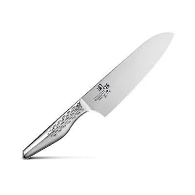 Elegance and Efficiency in Stainless Steel: Experience the KAI Seki Magoroku Shoso Santoku Knife, whose 16.5 cm blade is forged from 5CR15MoV stainless steel. With a hardness of 56 (±1) HRC, it combines timeless design with cutting-edge technology and is the ideal tool for demanding kitchen tasks. Ergonomics meet modern craftsmanship: The flawlessly designed handle made of 18-8 stainless steel with a diamond pattern combines elegant design with ergonomic comfort. Enjoy the perfect symbiosis of form and function, which not only elevates your cutting work to a new level but also brings elegance to your kitchen setup. Masterful Santoku: This Santoku knife is specially designed for fine and precise cutting techniques, from fine julienne to perfect dicing. It is ideal for slicing, dicing, and chopping – indispensable for preparing sushi or finely slicing vegetables. Durability and ease of care: Made from high-quality stainless steel, the Shoso kitchen knives are impressively durable and extremely easy to clean – perfect for intensive daily use. Please clean your knife by hand only. Tradition of KAI in Focus: The Shoso knives masterfully blend the artisanal craft of traditional Japanese forging with modern precision. These knives impressively illustrate KAI's commitment to realizing the symbiosis of craftsmanship and advanced manufacturing at the highest level.