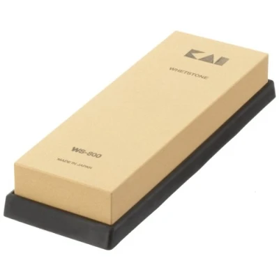 Discover the precision of Japanese craftsmanship with the KAI Sharpening Stone, grit 800. Ideally sized at 18.5 x 6.4 x 2 cm, this sharpening stone is perfect for regular knife sharpening. The 800 grit is excellent for restoring dull blades to sharpness - includes storage box. This versatile sharpening stone is a must-have for every kitchen. Ideal for sharpening kitchen knives and other cutting tools. With its 800 grit, it offers the right balance between effective sharpness and maintenance of the knives. For optimal sharpening results, soak the stone in water for about 5-10 minutes until no air bubbles rise. This step ensures that the stone is fully saturated with water, which is essential for effective and safe sharpening. Maintain your KAI sharpening stone to ensure its longevity. Clean it after each use and store it in a dry place. This simple care prolongs its life and retains the stone’s sharpening performance. Known for its expertise in traditional Japanese blacksmithing, KAI combines timeless design with modern technology to deliver products of unparalleled quality and durability. The sharpening stone embodies the dedication to Japanese tradition.