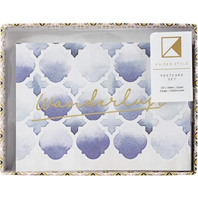 Send a handwritten card to friends or family for any occasion This 6.56x5 inch package contains Wanderlust Postcard Set: a collection of 24 cards (in four different designs) with gold foil accents