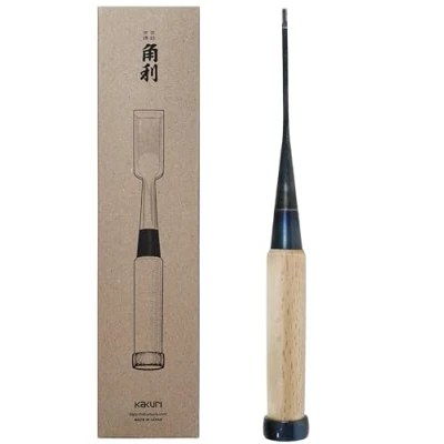 KAKURI Japanese Mortise Chisel for Woodworking 1/8" (3mm), Made in JAPAN, Professional Wood Oire Nomi (Hand Forged), White Steel No.2 Blade, Oak Handle