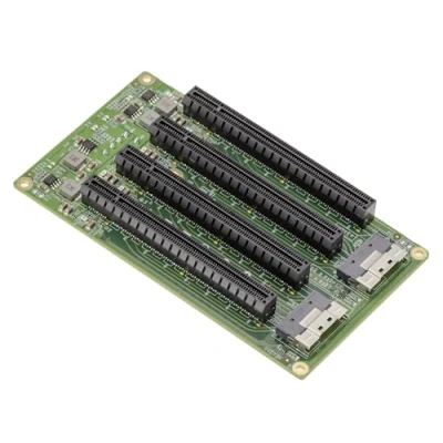 Converts two SFF-8654 24G inputs into four PCIe x4 Gen4 ports, ideal for adding multiple expansion cards while maintaining high performance and maximum compatibility. PCIe connectors in physical form x16 but wired in x4, allowing the installation of various cards while optimizing the use of available PCI Express lines. Each SFF-8654 connector provides two independent x4 links, providing the ability to use only one link if only two PCIe ports are required. Designed with Amphenol SMT connectors and 85 Ohm low loss PCB for stable, reliable transmission and compliant with PCIe 4.0 high speed standards. Incorporates a 12V GPU power connector (ATX 2×3 Mini-Fit 5569) and a 6A buck regulator ensuring stable power. No drivers required, compatible with Windows, Linux, macOS and DOS.