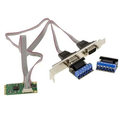 KALEA INFORMATIQUE Mini PCIe 2 Port RS422 RS485 DB9 Serial Card with EXAR XR17V352 Chipset Supplied Adapters for Wire to Mount.