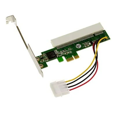 To be able to use PCI cards on a PCI Express slot. Useful for recycling your PCI cards on a new computer. FOR PCI 32 BIT IN 5V - NOT SUITABLE FOR PCI 16 BIT IN 3.3V. Compatible with PCI 2.2 bus, Molex power cable, Open rear bracket (particularly useful if you are re-using a low-profile card) Height from bottom of PCIE connector to top of PCI connector: 47mm Recognised by all OS, no driver required for the adapter itself. PERICOM PLX PEX8111 CHIPSET