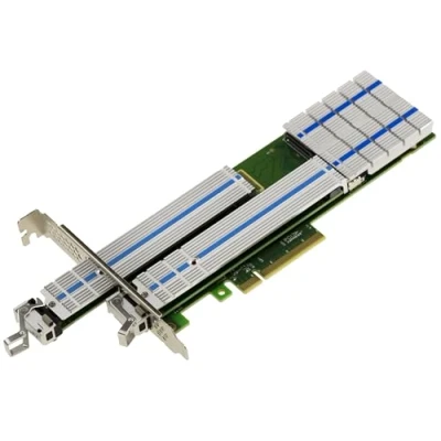 This card will allow you to control two M.2 PCIe M Key (or B+M Key) SSDs independently or as a RAID cluster. This version allows the mounting of SSDs on hot-swappable drawers. For PCIe 3.0 or higher port in x8 (compatible x8 and x16). PCIe x8 card with 2 ports for M.2 M Key SSD. Each M2 SSD is mounted on an independent rack, with radiator, and hot-swappable from the back of the card. TRIM & S.M.A.R.T. Control Integrated with TBW tracking. For use on PCIe type 3.0 or higher motherboard only. Compliant with PCI Express M.2 1.0 specification. Supports data transfers up to 2.5Gbps, 5Gbps, 8Gb/s. Compatible with 2230, 2242, 2260, 2280, and 22110 formats. Marvell 88NR2241B0 Raid Chipset. Supports hardware RAID 0, 1 and JBOD. Easy installation and no drivers required (UEFI and NVMe compatible bios required). Compatible with Mac, Windows and Linux (if NVMe support by OS). The cooling device of the chipset is independent of that of the SSDs. Dimensions 68.9x180x16 mm Operating conditions: temperature 5 to 50°C and maximum humidity 90%