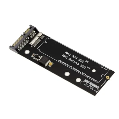 This adapter will allow you to connect a 2012 MACBOOK AIR SSD to a SATA port to use it as a hard drive or to recover data. This version has a metal socket, its quality and compatibility are superior to the usual version with plastic socket. This adapter will ONLY fit for 2012 models of type "AIR" or "RETINA", it will not fit for Mac SSDs produced before or after 2012, nor will it fit for 2012 MAC "Pro" SSDs that are larger. Example of supported models (only if produced in 2012): PA5025G A1398 MC975 MC976 MD224 MD223 MD231 MD232 A1425 A1466 A1465 Powered by SATA connector. Size: 125mm x 43mm x 10mm