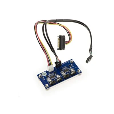 Allows you to duplicate the internal USB 2.0 connector in the same way as a simple "multi-socket". Maximum transfer rate 480 MBps Connector supplied: 30cm. With power supply. Plug and play, no software installation required. Four 9-pin USB ports, each supporting two USB 2.0 ports.