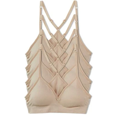 Kalon Women's Clothes 4 Pack Racerback Sports Bralette Seamless Wireless Comfort Bra, Light Beige, S