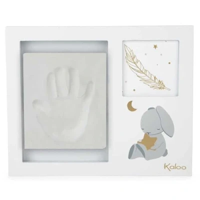 IDEAL BABY GIFT: A wonderful gift for parents who want to keep a memory of baby's first weeks. Preserves the imprint of the baby and the dream of many parents who can see the development of your toddler as it gradually grows bigger. This keepsake frame consists of one space for baby's photo and another for baby's footprint or hand print. EASY TO USE: This imprint kit is quick, easy and safe for your baby's skin, giving you an unforgettable keepsake of your toddler's first few weeks that you can create yourself at home. The set includes: 1 wooden photo frame, 1 bag of clay, 1 mould, hook for hanging the frame. Poesy and delicacy: Kaloo Home products are perfect for creating a soft universe with timeless colours in the children's room or your interiors. FEATURES: Contains 1 wooden photo frame, 1 bag of clay, 1 roller, 2 stickers, hanging hooks. Product dimensions: length 26.5 cm x width 2.2 cm x height 21.5 cm. Material: wood (frame), clay (imprint set) Recommended age: from birth. French design: Kaloo products are developed in France, in the Jura, with special attention to the materials used, the style and the colours used. A complete collection to offer the little ones a soft and enchanting universe that meets their needs in terms of their development, health and safety. Our comforters, plush toys, dolls and educational games as well as decorative elements for the children's room accompany toddlers in their development and cognitive, psychomotor and socio-emotional development. Kaloo offers a whole world full of softness waiting for her from her birth.