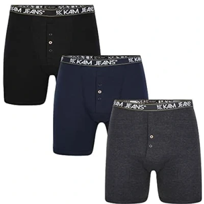 KAM Big & Tall Men's Multipack of 3 Button Fly Boxer Shorts Underwear Black/Navy/Charcoal 8XL