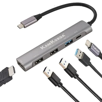 KamKorda 5 in 1 USB C Adapter hub dock 4K HDMI 3 Ports Type for MacBook Galaxy iPad iMac and more