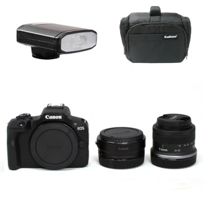 KamKorda Camera Bag + Flash R Mount Adapter R100 Mirrorless RF S 18 45 f/4.5 6.3 IS STM Lens, 24.1MP APS C CMOS Sensor, 4K Video 2 Year Warranty