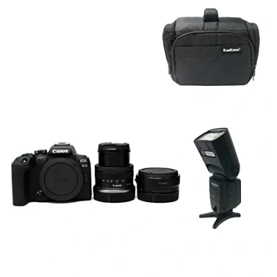 KamKorda Camera Bag + Flash R10 Mirrorless RF S 18 45 f/4.5 6.3 IS STM R Adapter, 24.2MP APS C CMOS Sensor, 4K Video 2 Year Warranty