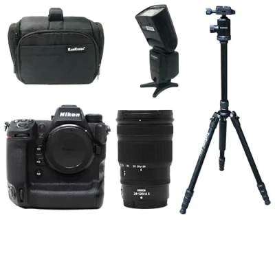 KamKorda Camera Bag + Flash Tripod Z9 Mirrorless Digital Body Z 24 120mm f/4 S Lens, 45.7MP FX Format Stacked CMOS Sensor, 8K30p and 4K120p Video 2 Year Warranty