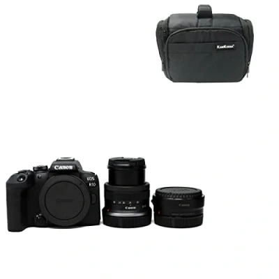 KamKorda Camera Bag + R10 Mirrorless RF S 18 45 f/4.5 6.3 IS STM R Adapter, 24.2MP APS C CMOS Sensor, 4K Video 2 Year Warranty
