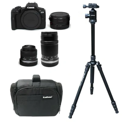 KamKorda Camera Bag + Tripod R Mount Adapter R100 Mirrorless RF S 18 45 f/4.5 6.3 IS STM 55 210mm f/5 7.1 Lens, 24.1MP APS C CMOS Sensor, 4K Video 2 Year Warranty