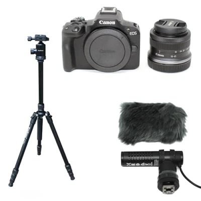 The R50 Mirrorless Camera's AF mode is designed for vlogging, which prioritises anything close to the camera but otherwise uses face detection mode. This is ideal for vloggers filming themselves who want to hold an item up and have the camera quickly refocus on it, then back to them when the item is lowered, for example, to showcase a product. The RF-S 18-45mm f/4.5-6.3 IS STM lens is ideal for vlogging with an STM motor that allows smooth, silent and accurate focusing. Add crystal clear audio to your vlogs and movies thanks to the electret condenser design of the DM-E100 Directional Microphone. The KamKorda Compact Advanced Tripod is a light and compact tripod that can also convert to a monopod. Capture Full HD, 3D, and 4K video, as well as raw and burst photography with the 128GB Extreme PRO UHS-I SDXC 200MB/s Memory Card