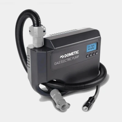 An easy to use, lightweight 12V pump designed for all Dometic AIR tents and awnings. The Gale 12V Electric Pump makes setting up your tent or shelter quick and easy - simply plug the pump into a 12V power source and set the required PSI to inflate your shelter in minutes. Comes complete with an extra-long cable and six different nozzles to cover the whole Dometic AIR range. Pump for Dometic AIR tents and awnings Powerful inflation Easy to read digital screen Automatic cut-off 6 fitting nozzles Extra-long cable 12V output